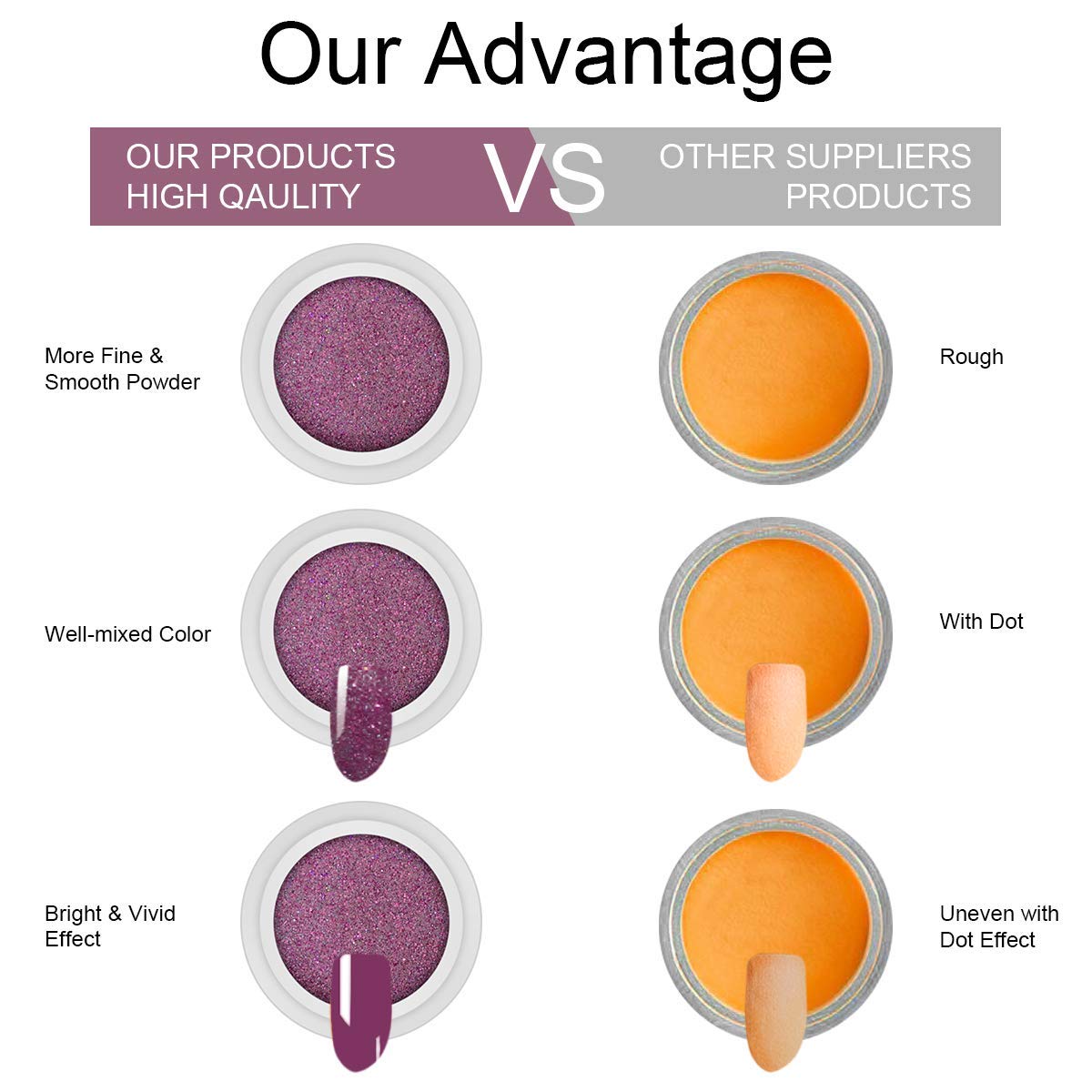 - 【What You Get】: 8 colors Nail powder (10g each jar)This set don't contain the dip base coat, top coat and activator!