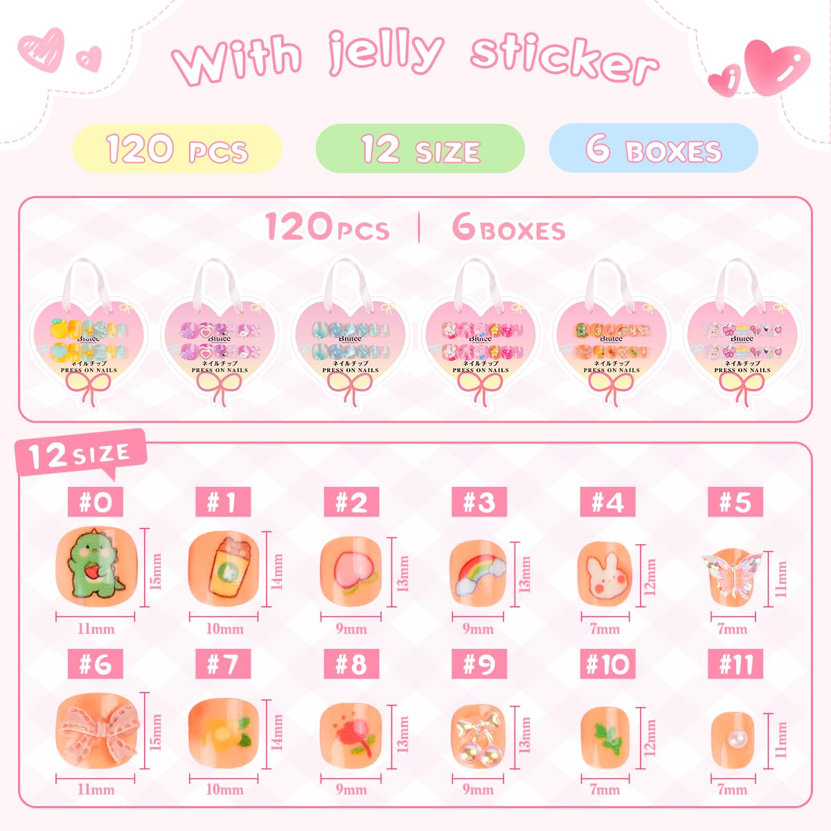 - 【3D Design】Each set of nail art has 3D carvings,and come in different pattern designs, which are sweet and cute, giving your little girl a fantastic decoration.