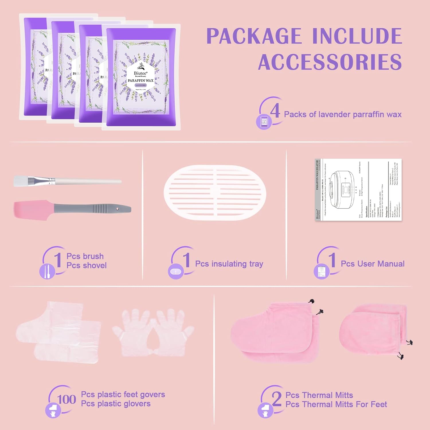 Biutee Paraffin Wax Machine – 3500ml Touchscreen Warmer with 4 Lavender Wax Packs