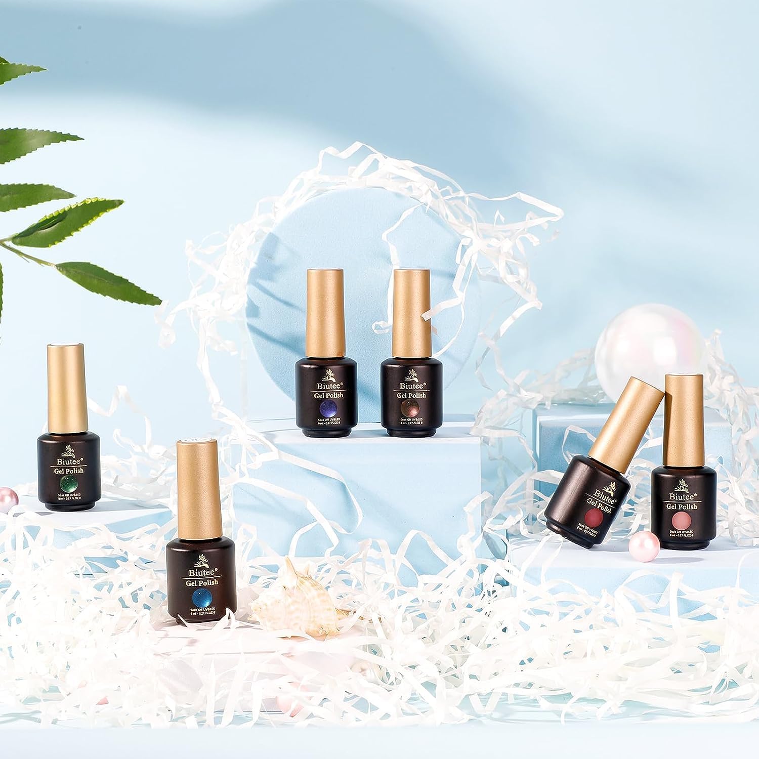 Biutee Reflective Cat Eye Gel Set β 6 Sparkling Aurora Colors for DIY Nails